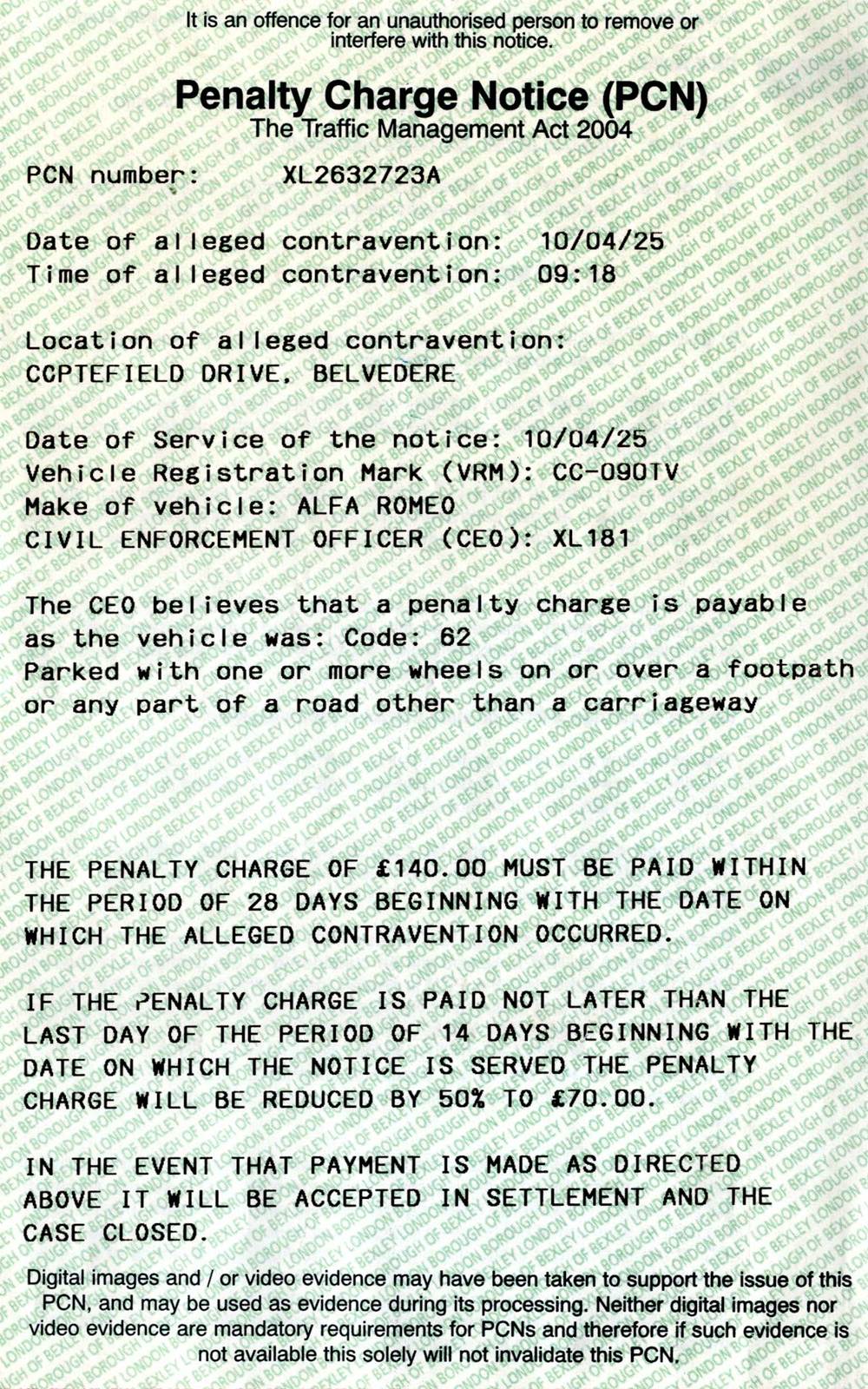 acquired a parking ticket at the weekend - blown into the garden by the wind.