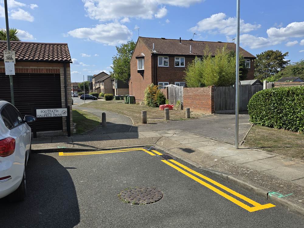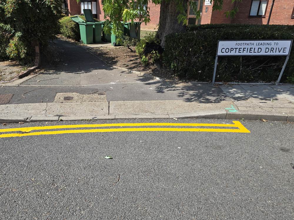There are lines at the end of the footpath between Halifield and Coptefield Drives