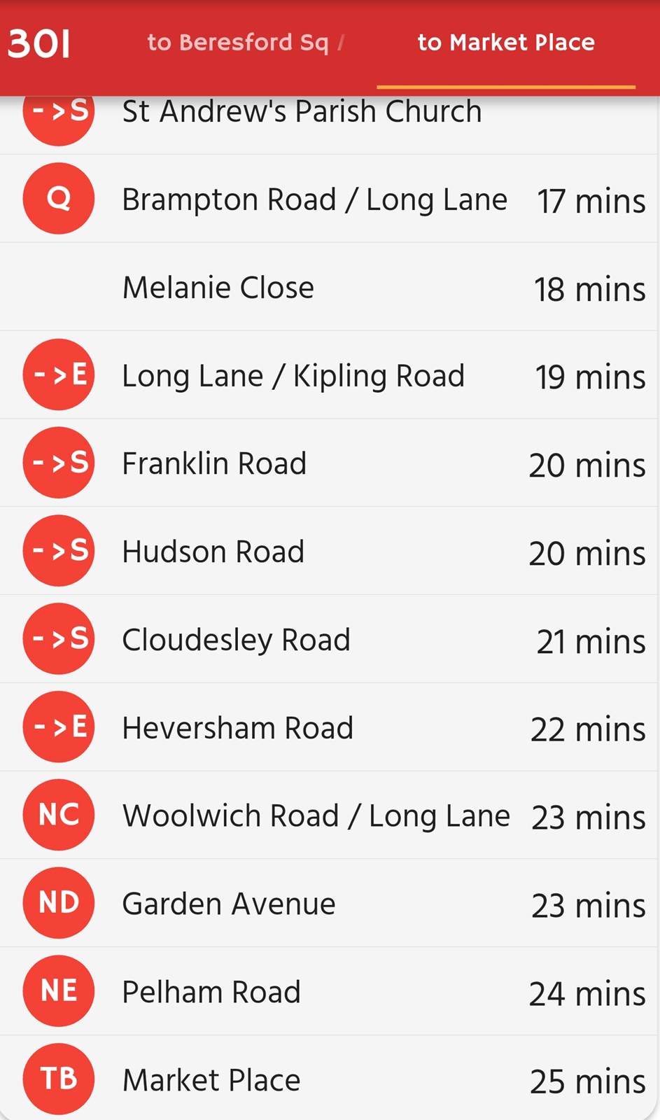 Yesterday I took a 301 bus to Bexleyheath which observed the timetable; well