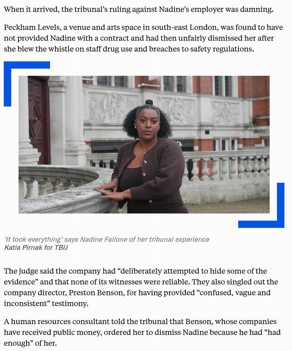 In more bad news, the employment practices at the StoryTeller’s sister screen known as Peckham Levels
