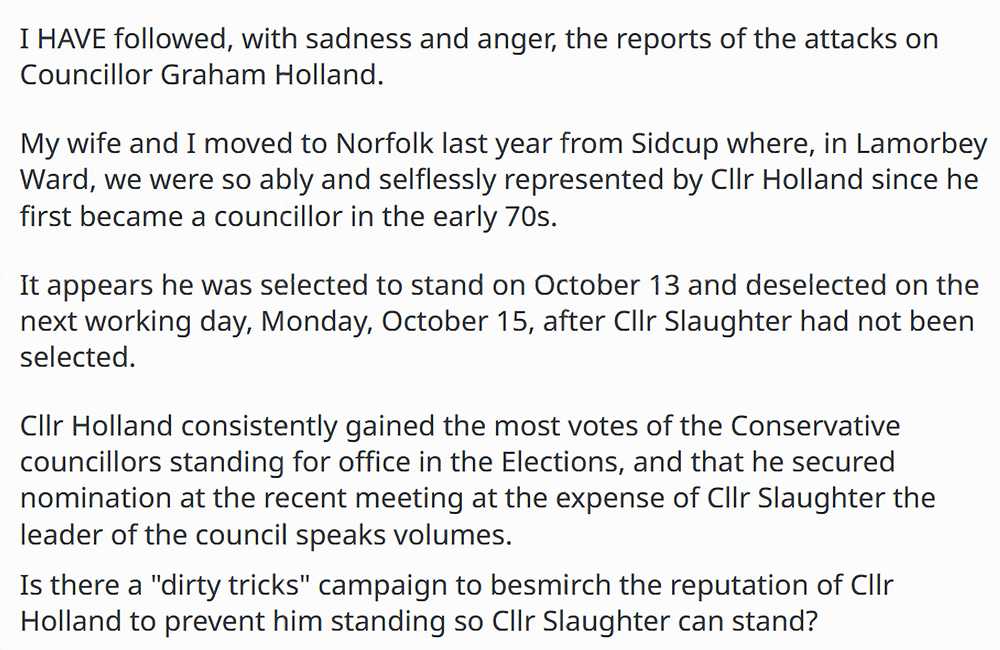 Councillor Holland did that and went on to win the selection process preceding the 2002