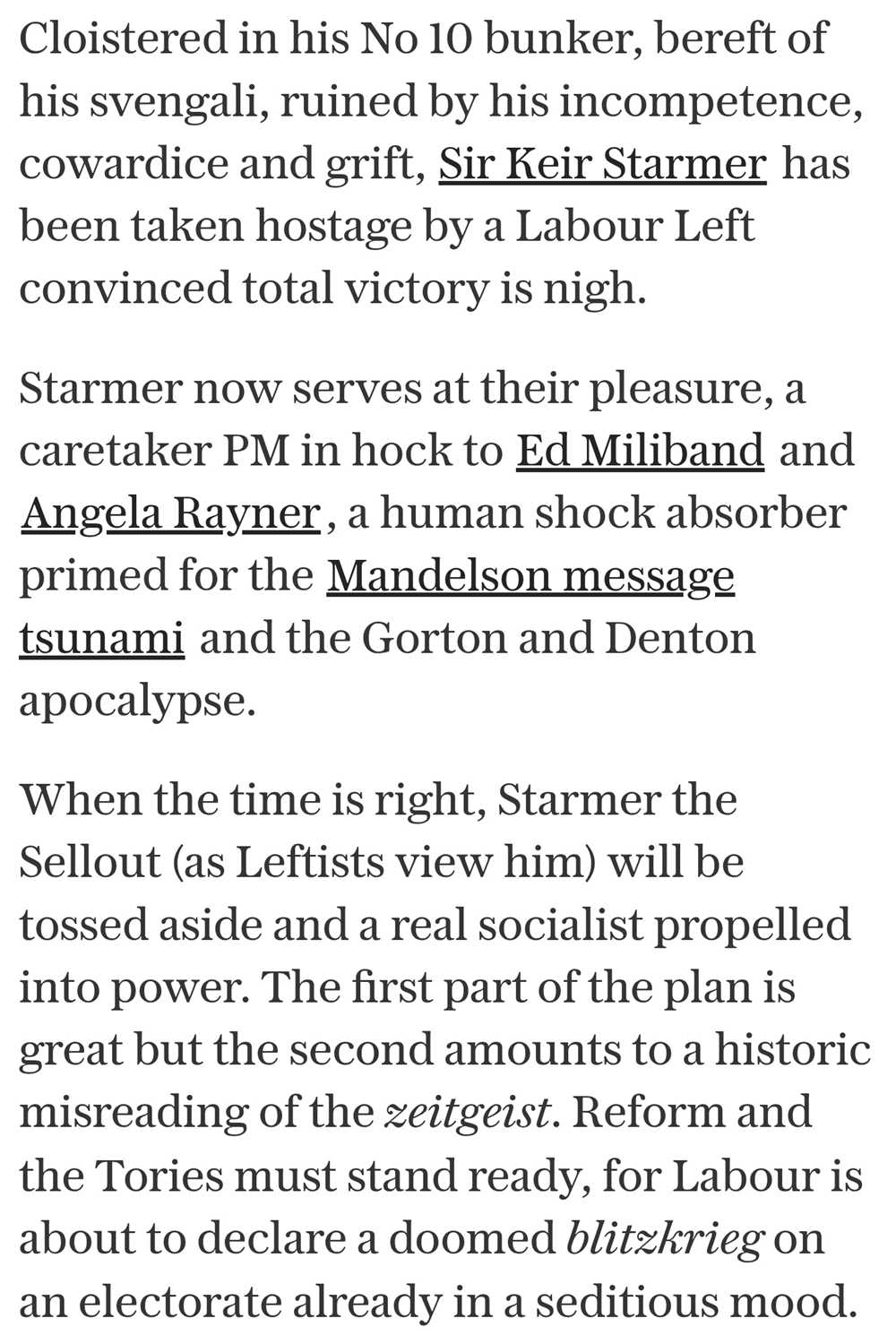 stuck my neck out by saying that if Starmer was elected he would be brought down by the left wing