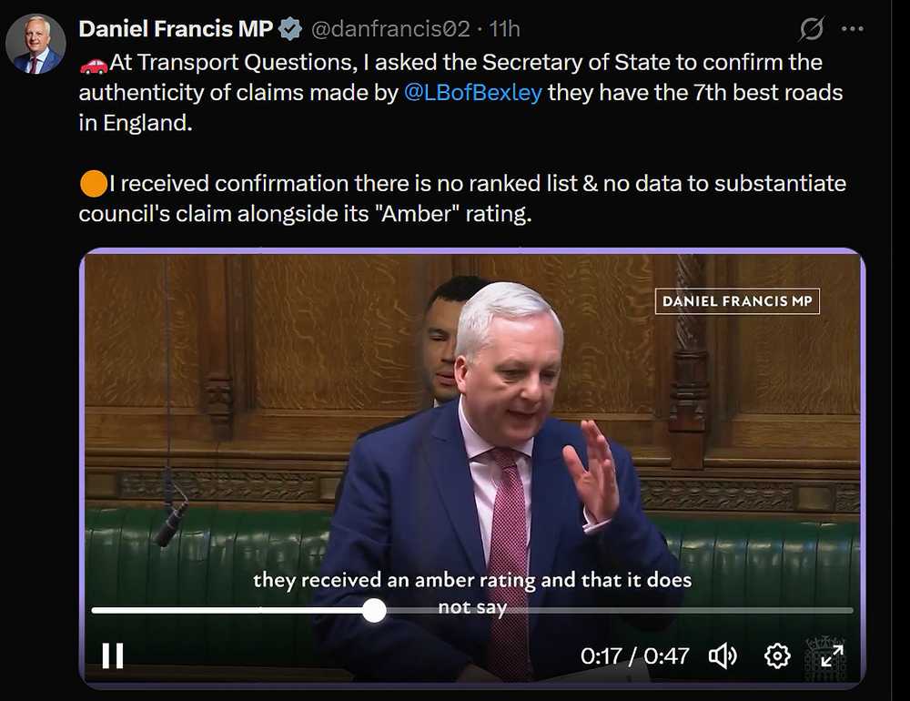 The recent Conservative group claim that Bexley has the seventh best roads in the country was of