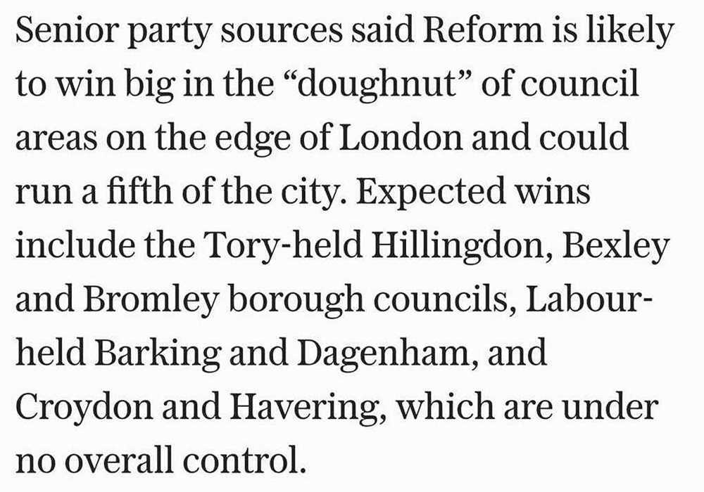 According to today’s Torygraph, Reform UK is set to take Bexley Council on