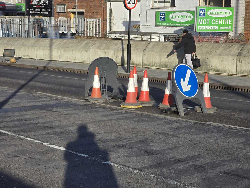 On or about 1st December someone put cones in the middle of the Harrow Manorway flyover for what reason