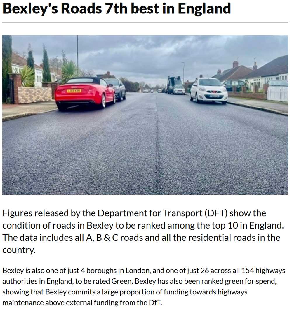 Bexley has claimed its pothole situation is the 7th best in England which I suppose may