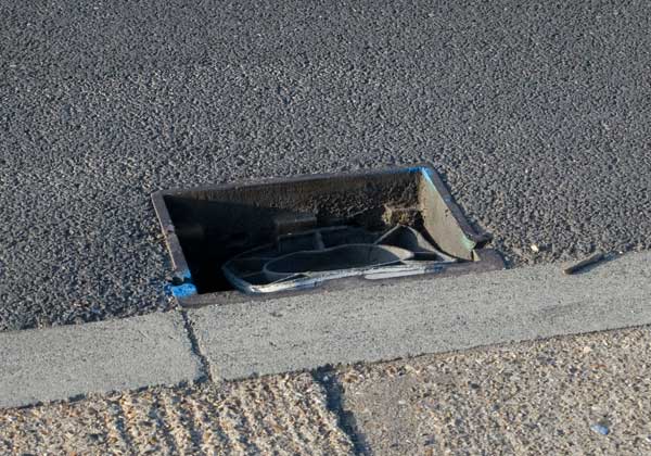 I saw that every drain gully was missing and covered by a traffic cone. The