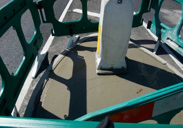 spurred into action and concreted in the hole in one of the pedestrian refuges which has