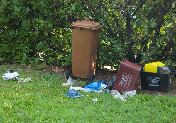 uncollected rubbish arranging the contents so that any misplaced rubbish is not visible.
