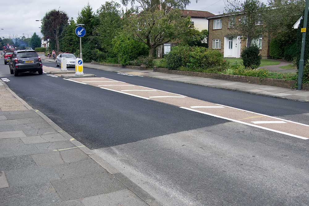 treatment yesterday. The new surface extends only as far as the traffic island.