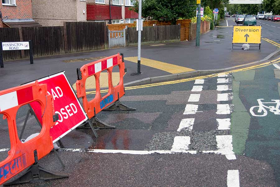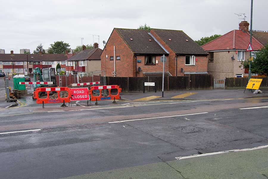 yellow diversion sign pictured will take you on a 4½ mile detour into Thamesmead. I doubt any