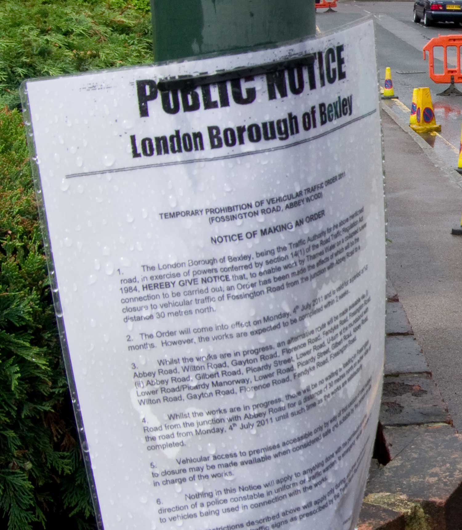 you will see that Mike Frizoni has given Thames Water permission to close Fossington Road, Belvedere for up to 18 months.