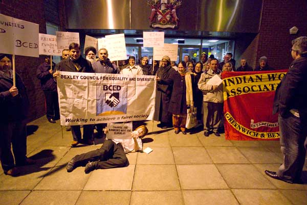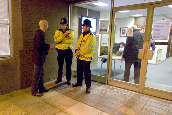 Bexleys Civic Centre. The doors were closed and I counted 12 policemen at the