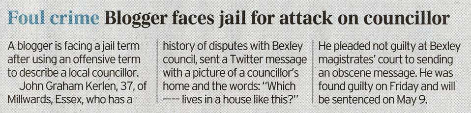 Within days of those blogs, Bexley’s council leader Teresa O’Neill, gave my name
