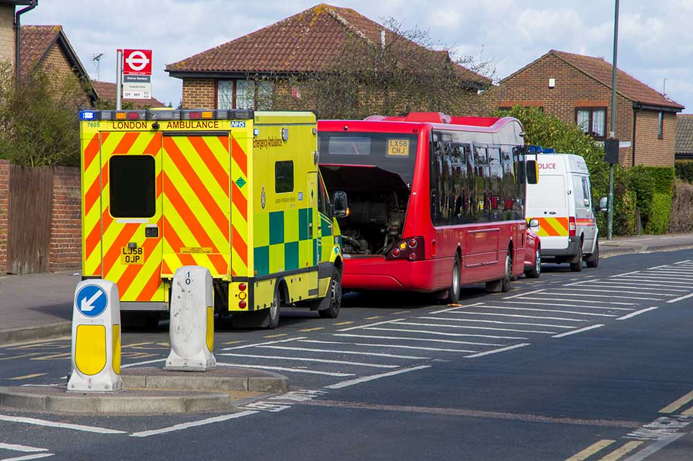 to say that a bus had broken down right opposite one of the traffic islands that