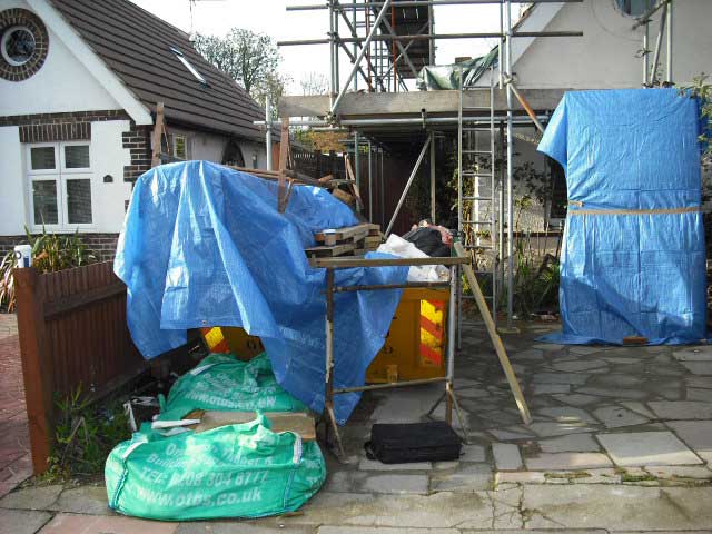 The builder’s equipment and materials are not pretty but he seems to be making