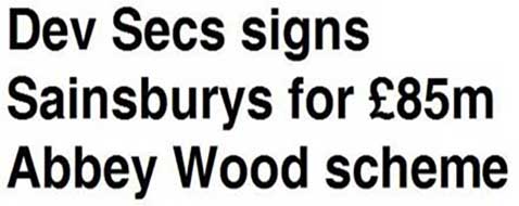 has been submitted); down in Abbey Wood Sainsbury’s has agreed to open a store