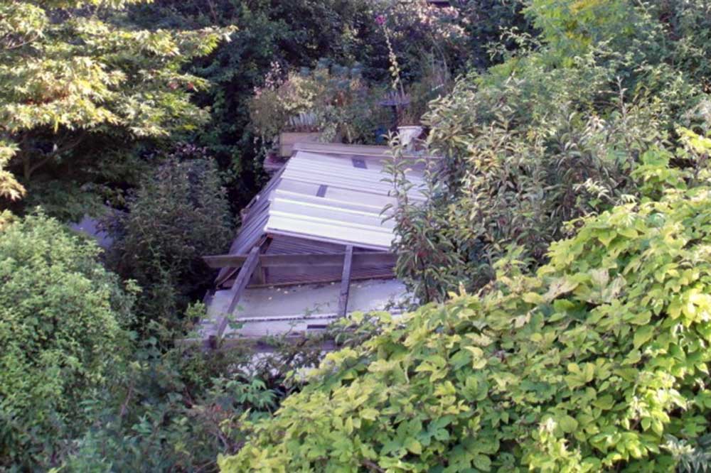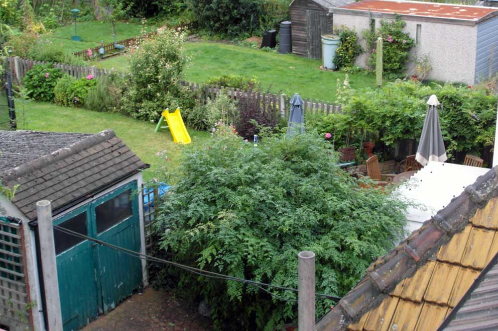 The scaffolding gives a vantage point to see just how detrimental her garden is to the local ‘amenity’.