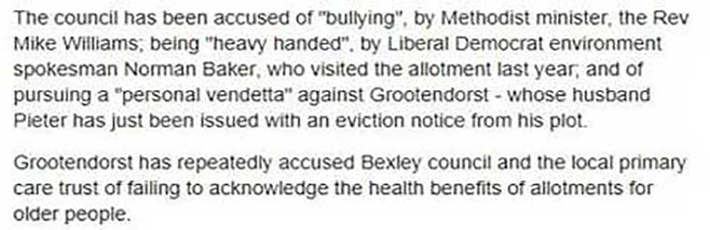 garden? Ah, I remember now, she made monkeys of Bexley council when they