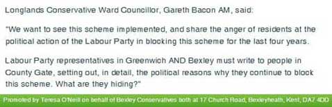 We have known for a long time that Bexley council has achieved nothing for County Gate residents in the six years the Conservatives have been ruling the roost. We learned only last Wednesday that councillor Peter Craske threatened to throw his toys out of his perambulator if the beleaguered residents dared to criticise him. We have also seen that the only people prepared to speak up for County Gate have been Munir Malik and Seán Newman, both Labour councillors from the other extremity of the borough and we know from last year’s News Shopper report and Mrs. Dakshy’s revelations that Craske is totally unable to get along with anyone who isn’t an extreme right wing Conservative.