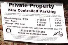 are of a Bexley Cabs car parked beneath the clamping company’s sign.