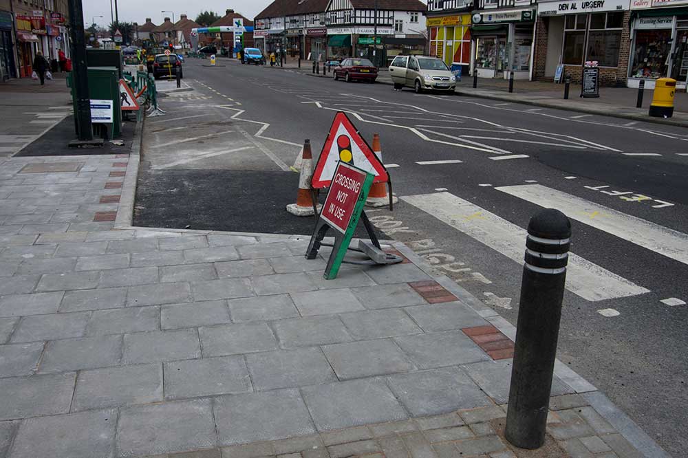 you can see the remnants of the road markings and a new crosing is being constructed