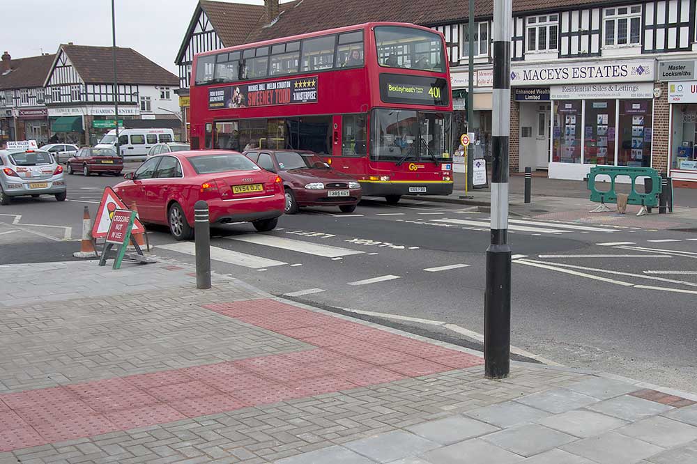 Note: The pedestrian crossing shown is of the original after the road was made narrower