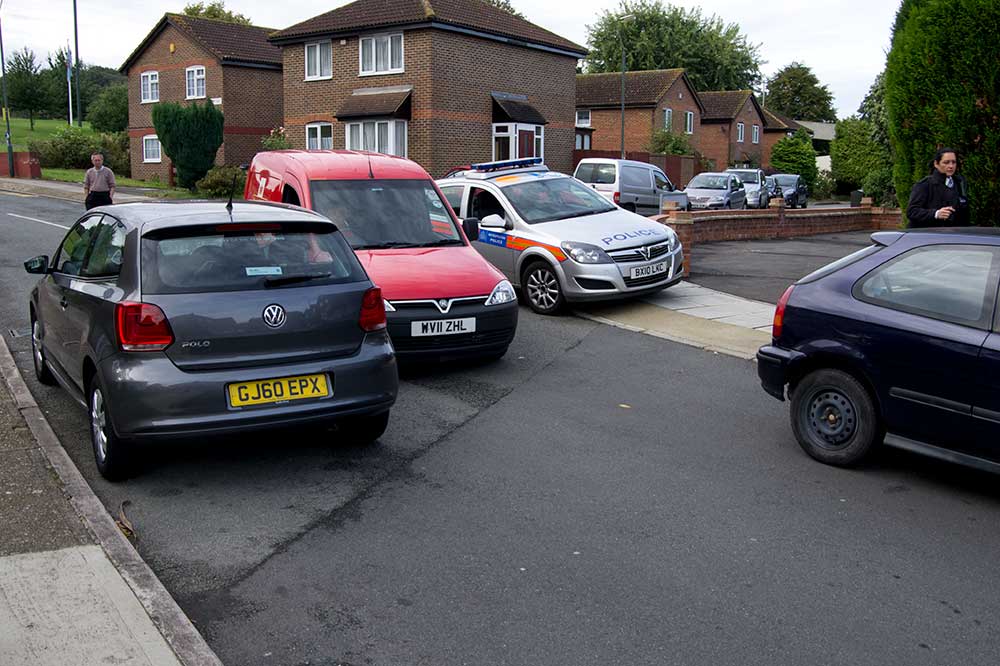 inch or two to spare on each side but the Post Office van which arrived after a police car