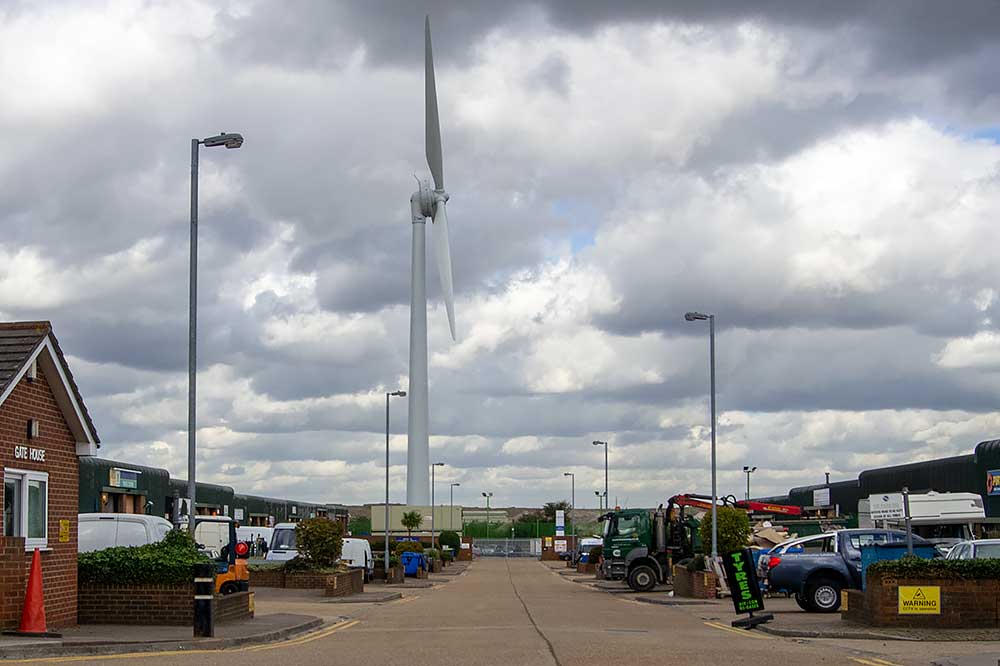 coloured advertisement but in Erith it is OK to erect a turbine in the middle of