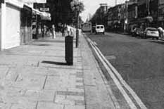 photo and a monochrome flower basket obscures a parking sign just as effectively