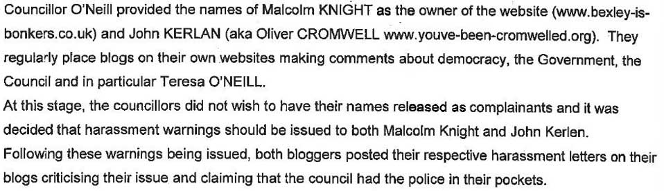 We know from the documents relating to my (and John Kerlen’s) Harassment Warning that