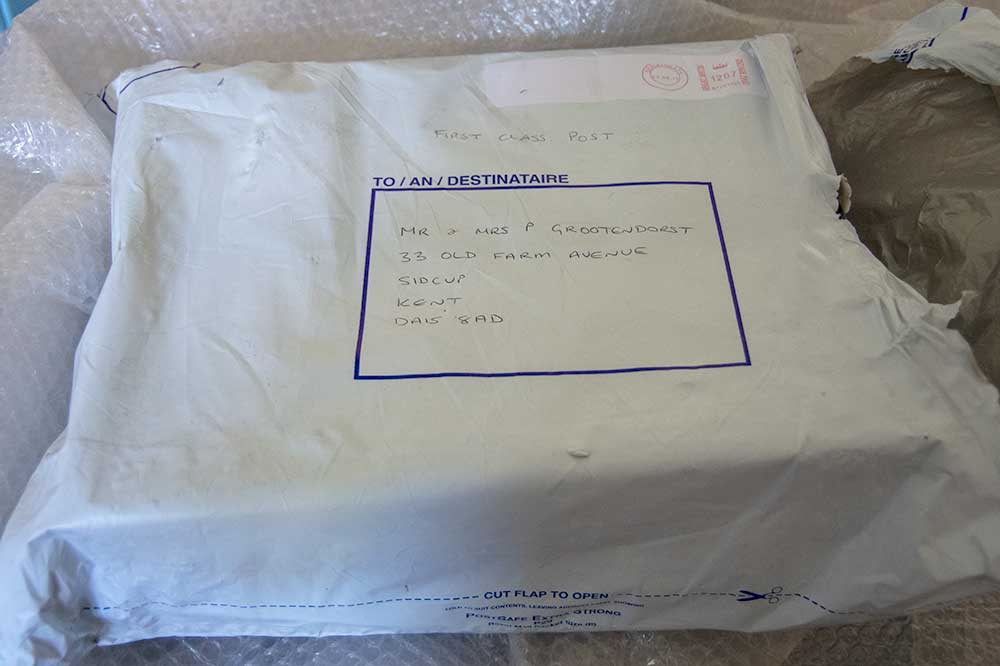large package with a £12.07p stamp on it was delivered to Mrs. Rita Grootendorst