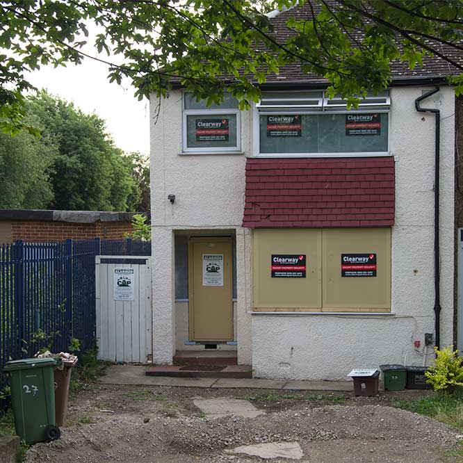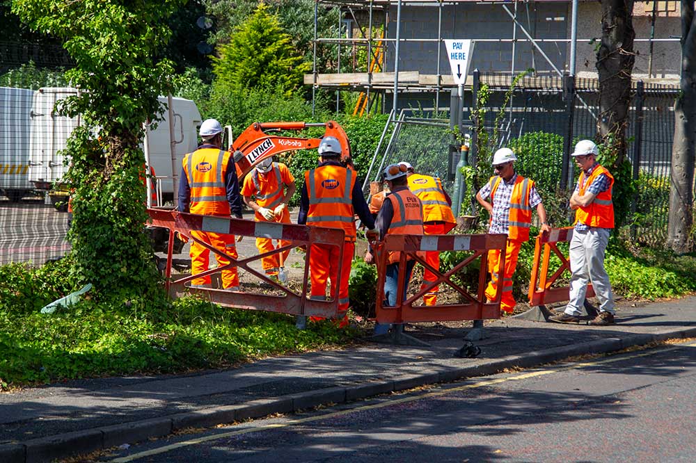 was fenced off and men were at work clearing the peripheral shrubbery.