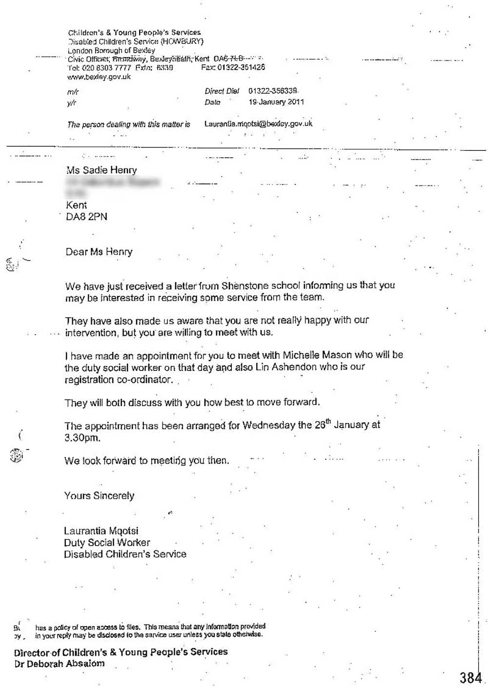 is beyond dispute that from late 2007 when Health Visitors warned Bexley