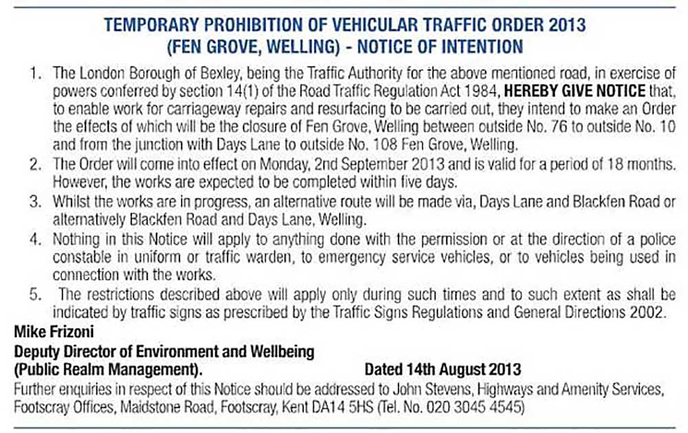 A reader drew my attention to one of Bexley council’s Public Notices issued last week. It looks ordinary