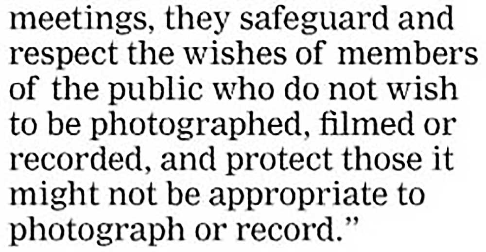 council chamber it is banned to “respect the wishes of members of the public”.
