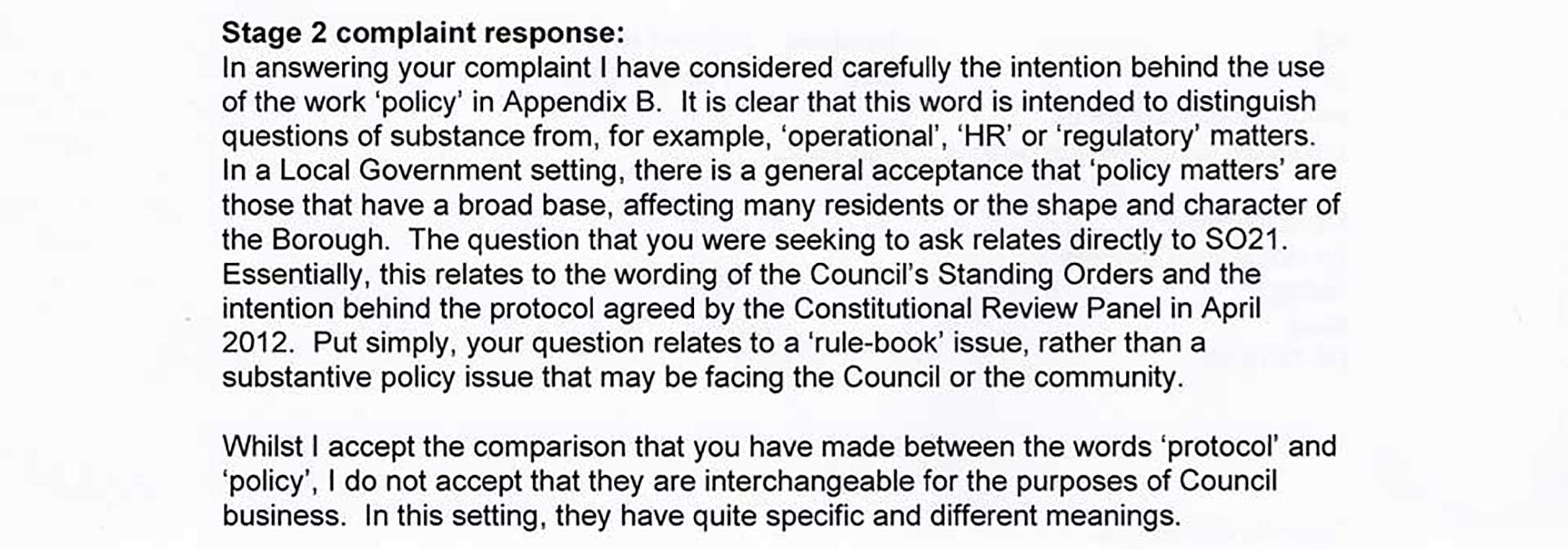 Government Ombudsman all because Teresa O’Neill, leader of Bexley council, is dishonest and
