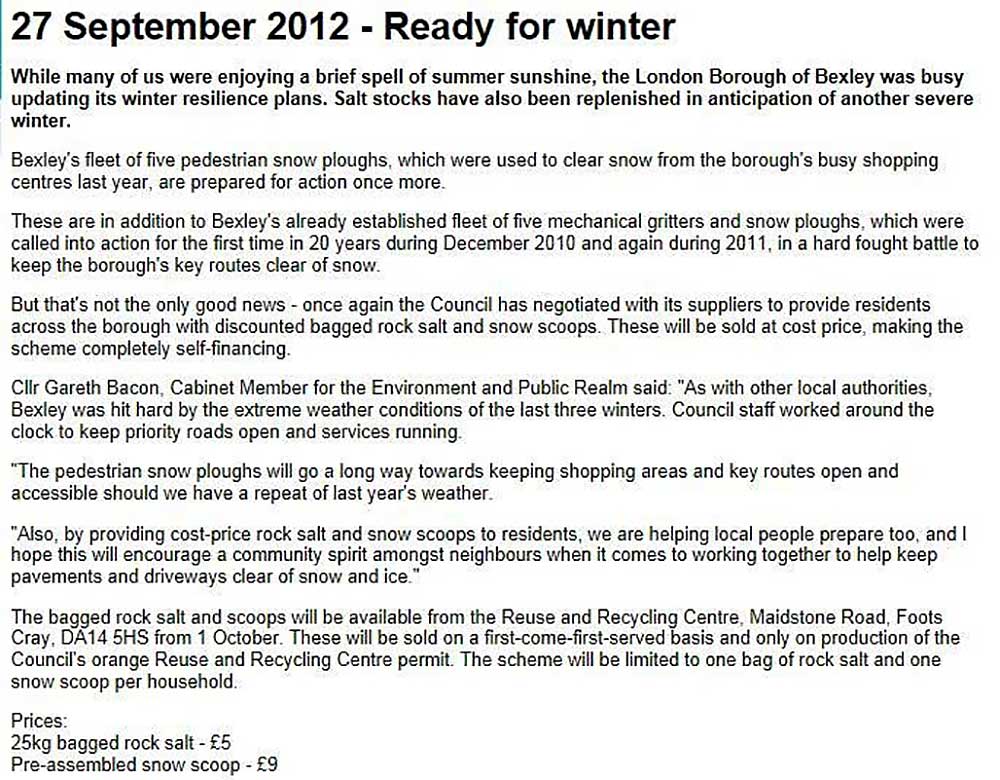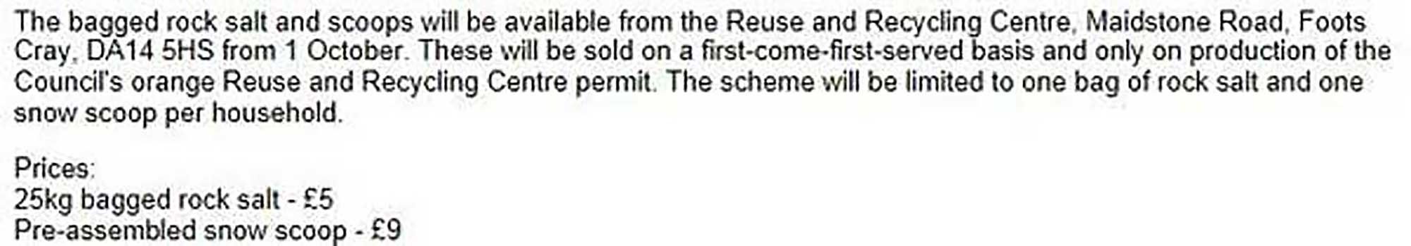 Bexley council has been selling brown rock salt to residents supposedly at cost price to help clear snow since September.