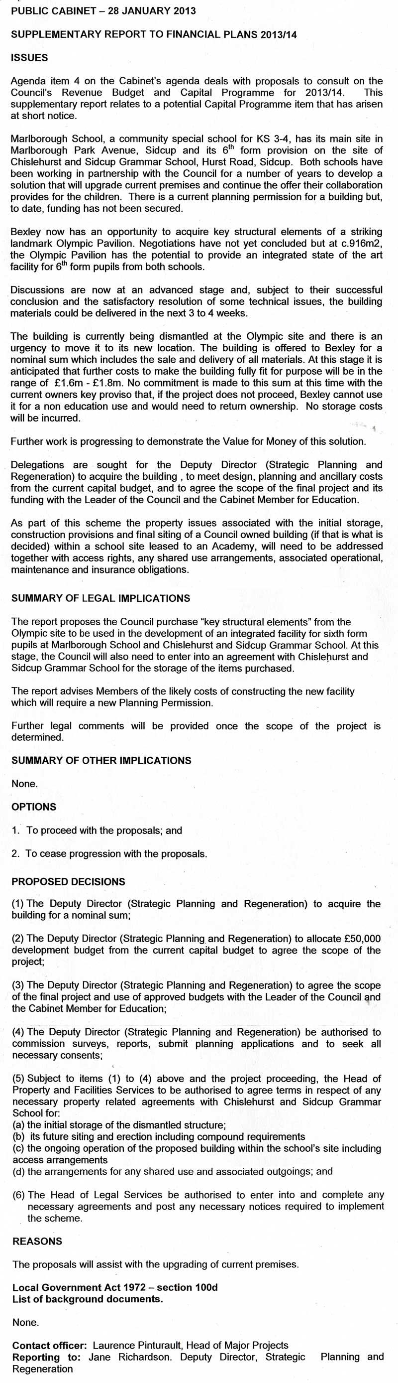 grounds of Sidcup & Chislehurst Grammar School and has checked that it last applied for planning
