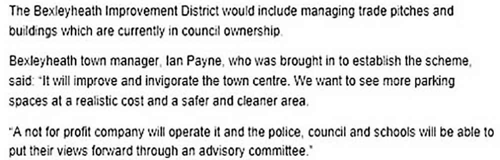Bexleyheath’s traders to fund its so called Business Improvement District (BID).
