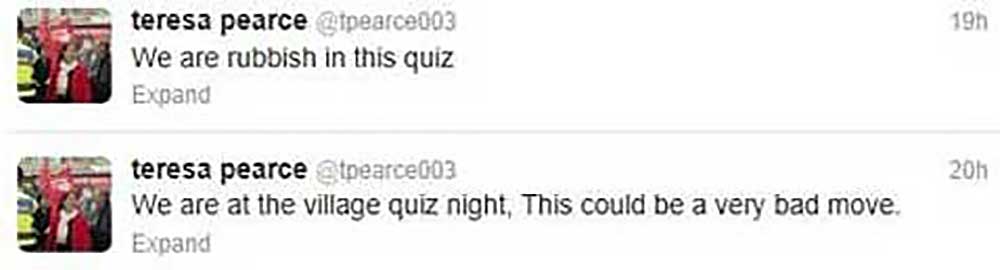 to have done a little better than Teresa Pearce as I came home £5 richer. The answer to