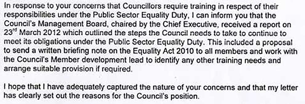 council as a corporate body recognised it was on shaky ground with the Equalities Act and