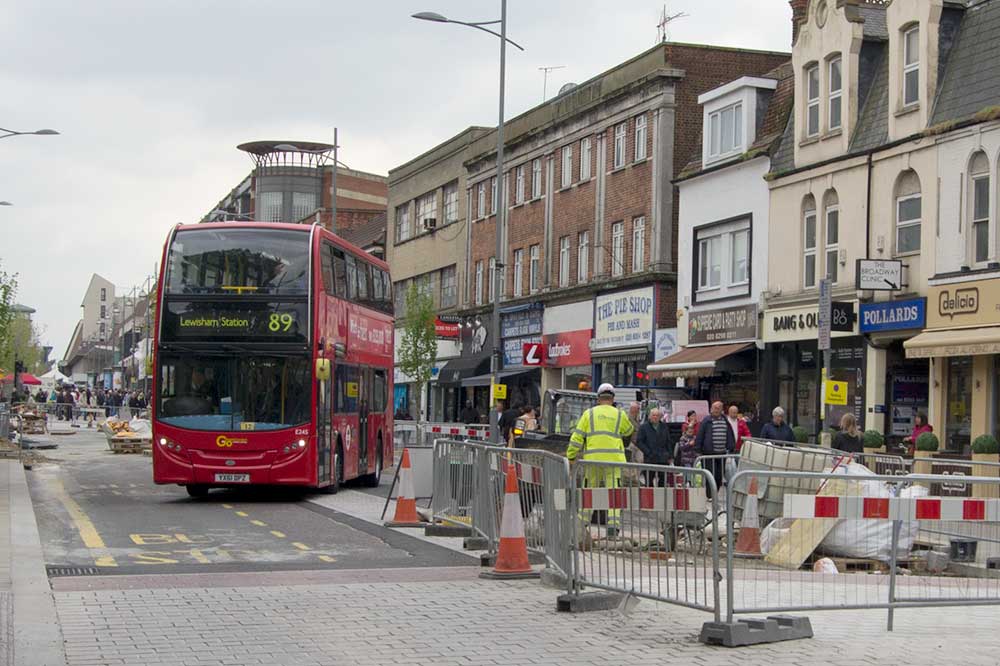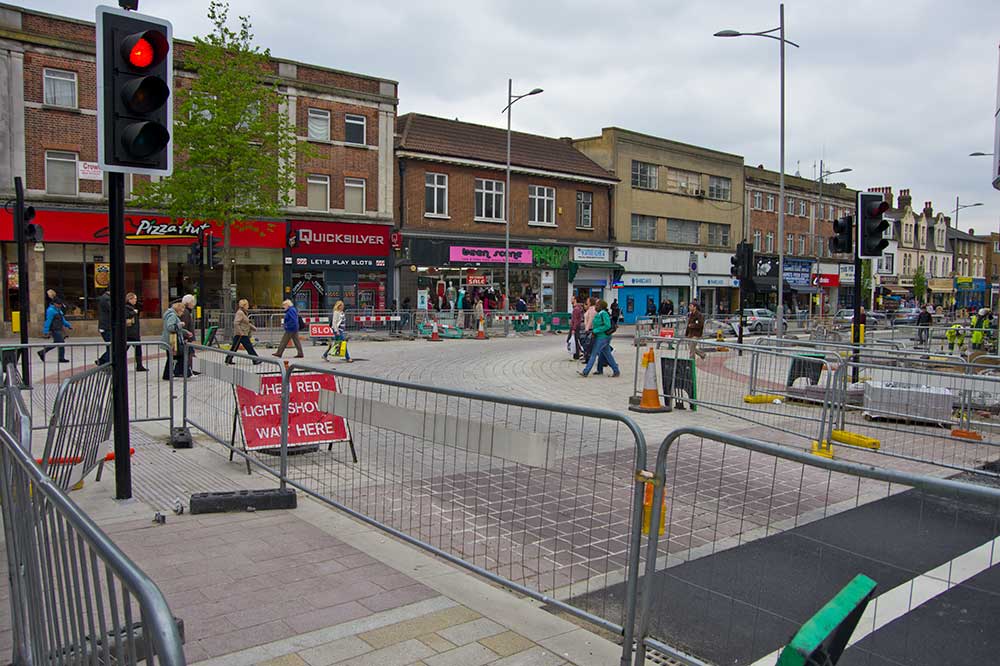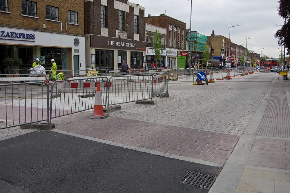 According to Bexley council the traffic disruption in and around Bexleyheath will be much reduced within the next ten days as traffic circulation is allowed to revert to normal but anyone who passed along Broadway this morning will have noticed that there is a great deal of work left to do.