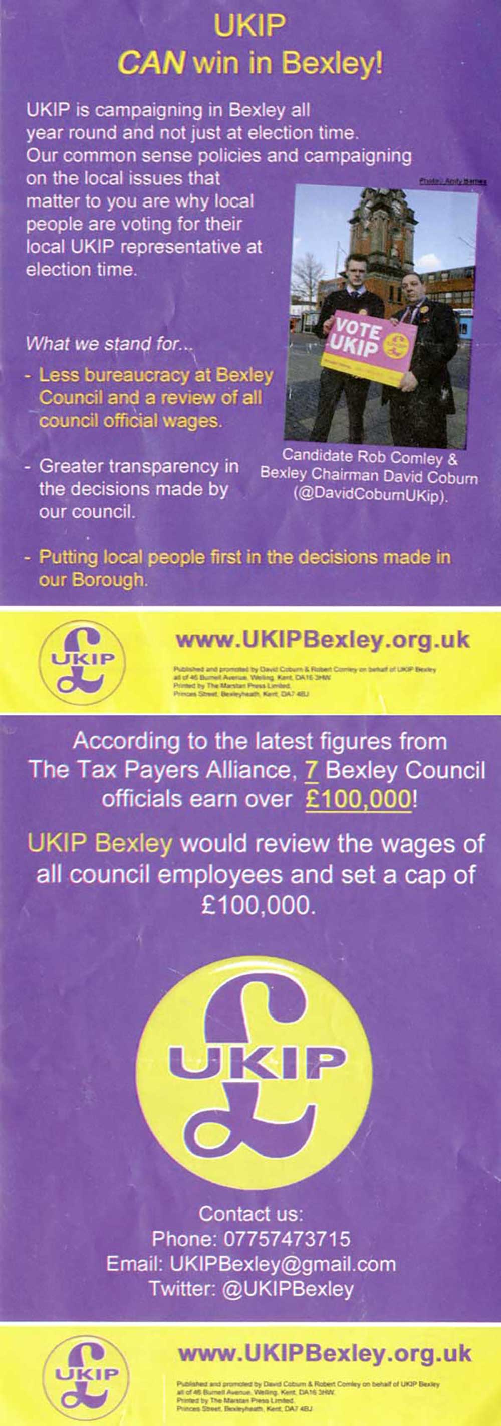The facsimile of the UKP leaflet featured here has been Photoshopped to fit the