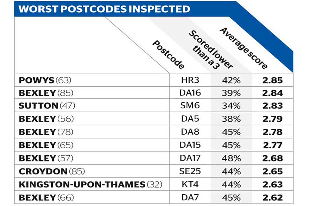 Which report on food hygiene. Six of the country’s ten worst postcodes are in Bexley.