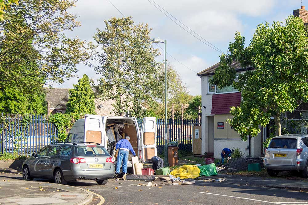 On the other side of the line a house is being readied for demolition. I’m glad