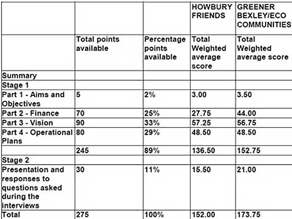 voting in favour of Howbury Friends. “Were all the bidders made aware of the