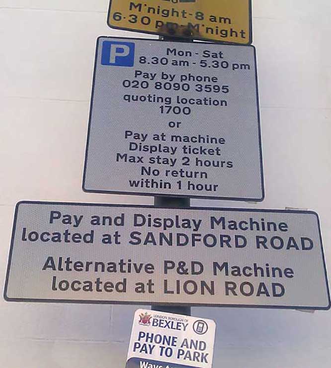 to make anything else impractical. In Abbey Road, Bexleyheath, just off the Broadway, a sign informs