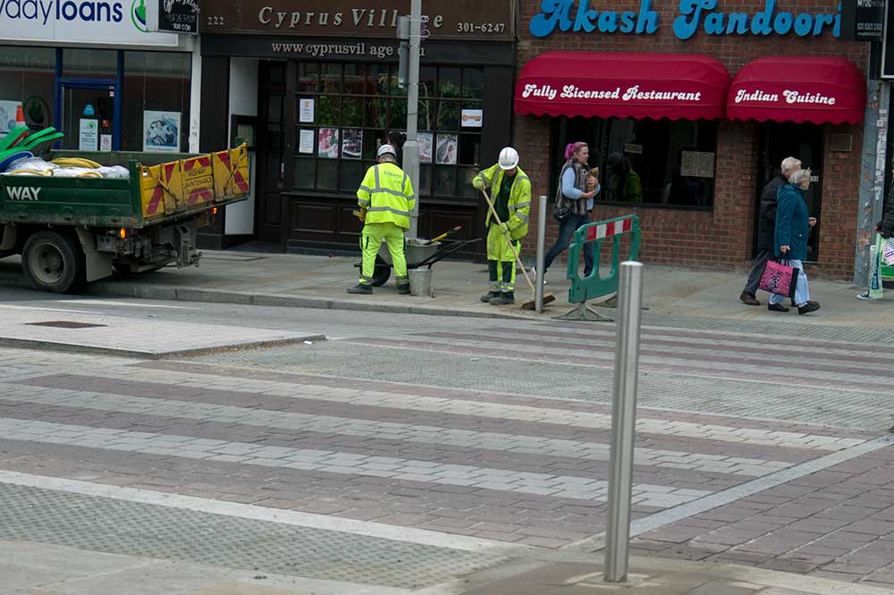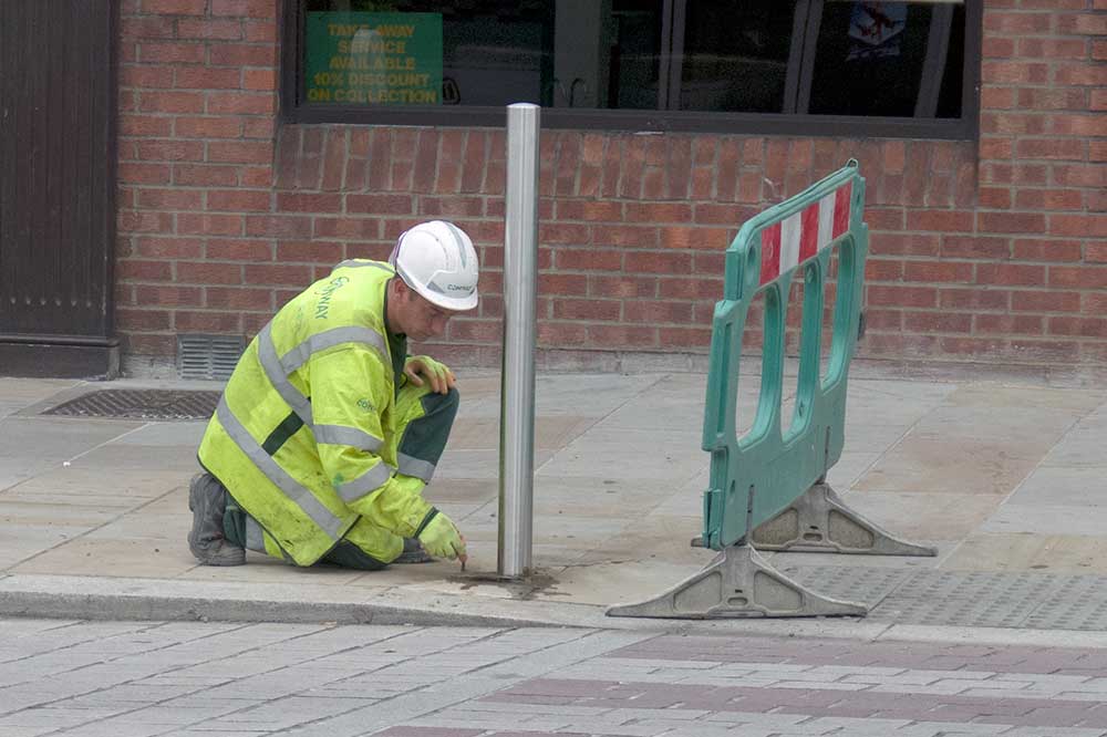 on the redesigned Friswell Place/Arnsberg Way junction and this week new street clutter has been installed.