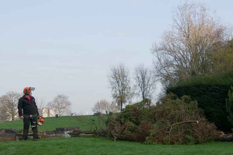 The tree surgeons have moved in to Lesnes Abbey park and the demolition